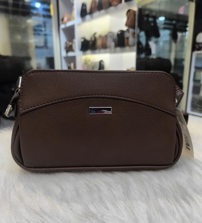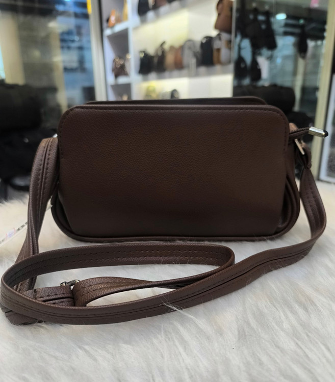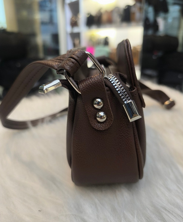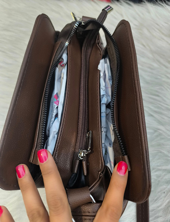 کیف دوشی زنانه جنس چرم خارجی یک زیپ سه محفظه جدا از هم رنگ قهوه ای