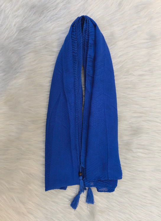 شال پلیسه ریز جنس نخی رنگ آبی کاربنی قواره دار