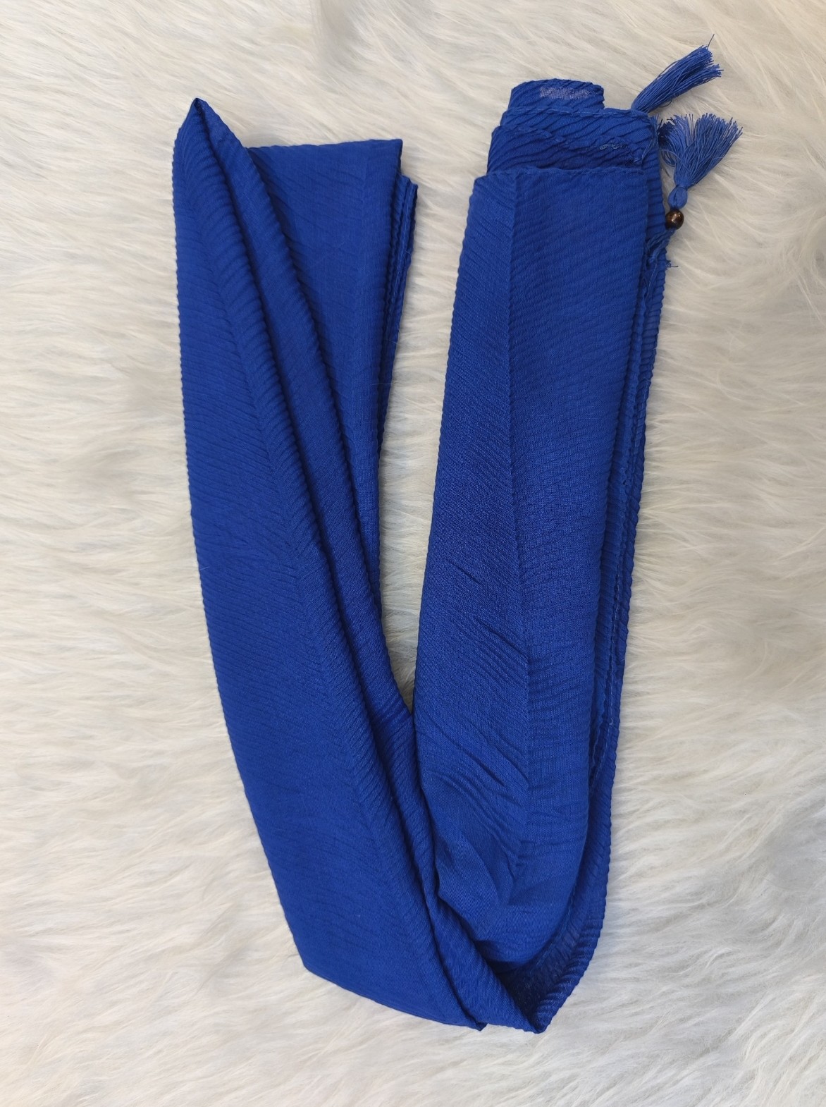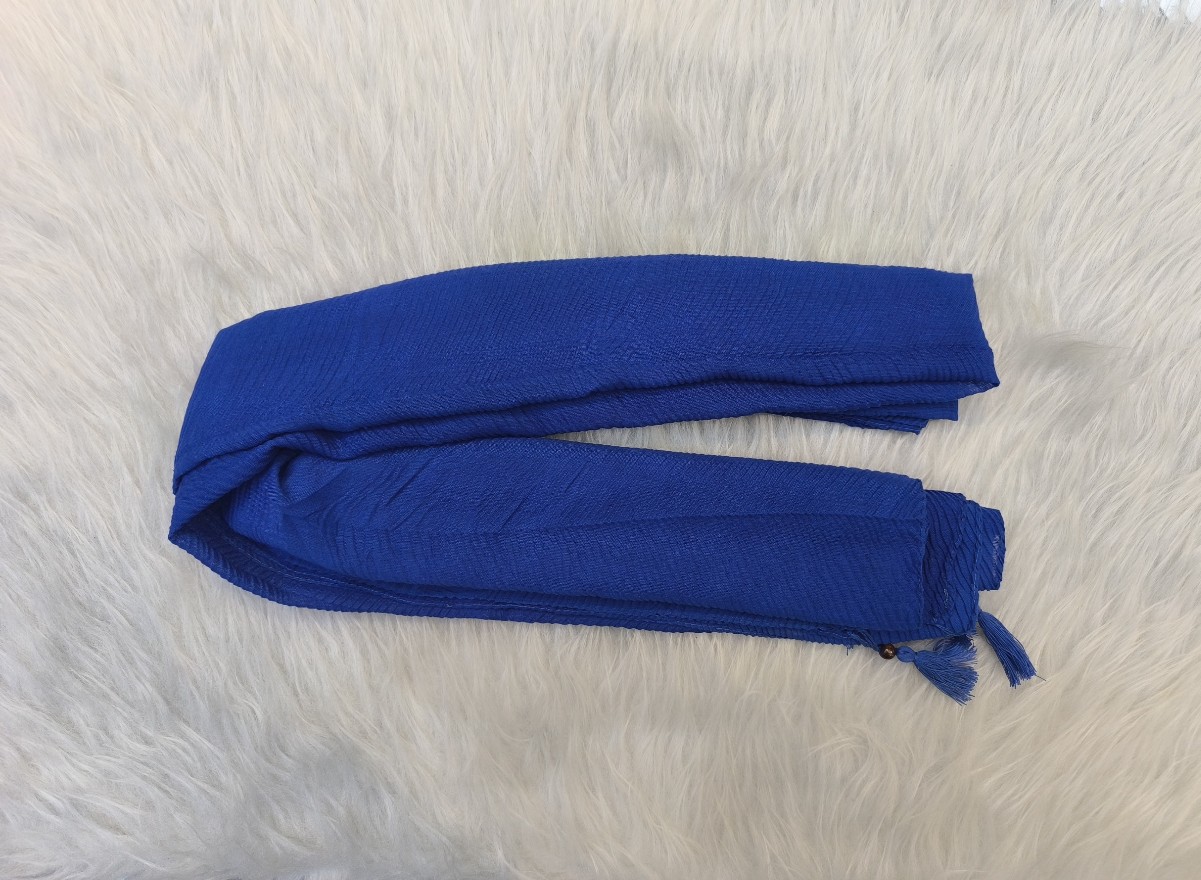 شال پلیسه ریز جنس نخی رنگ آبی کاربنی قواره دار