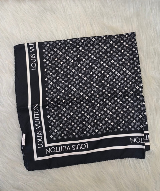 مینی اسکارف جنس نخی قواره ۷۰ رنگ مشکی سفید طرح دار