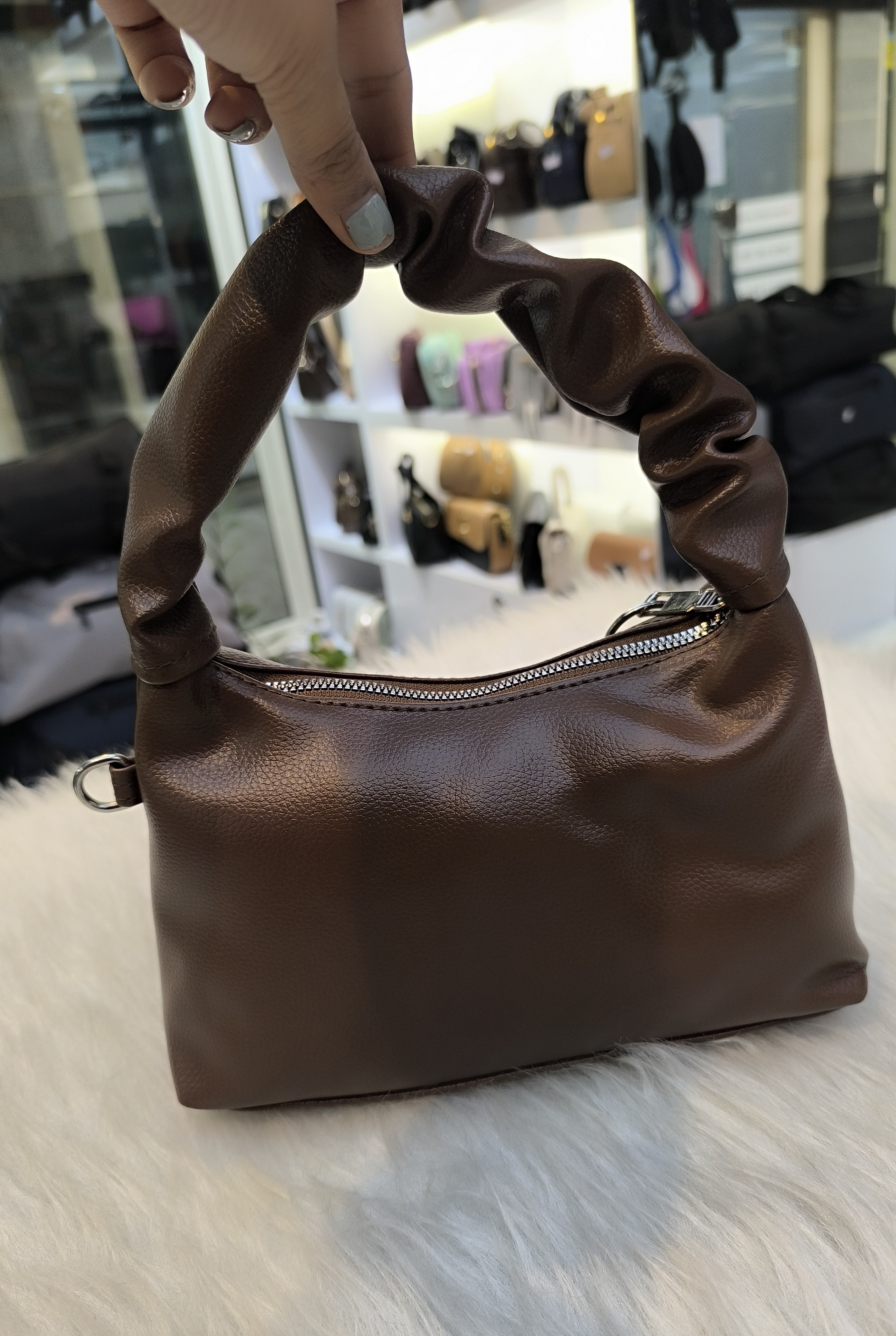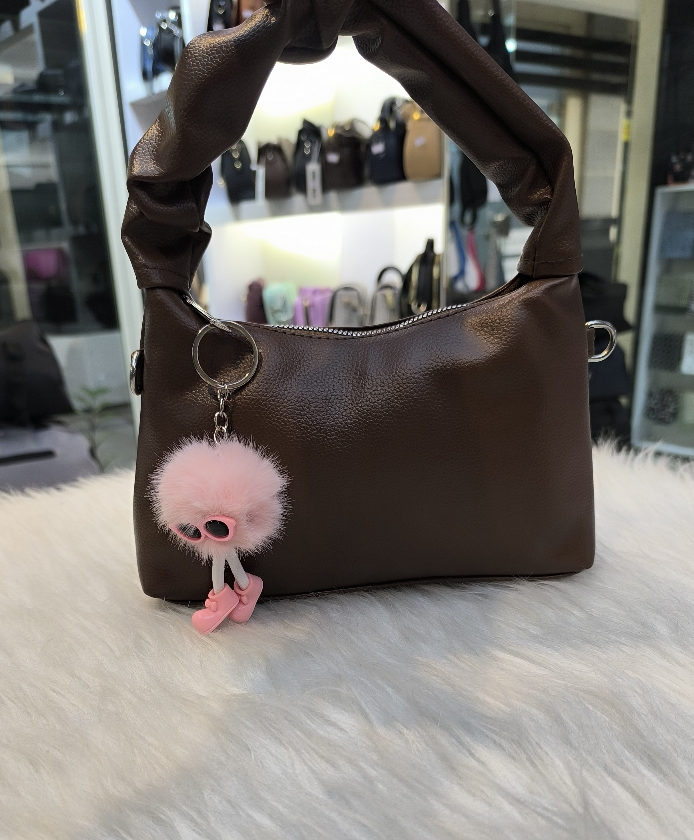 کیف دستی ودوشی جنس چرم خارجی شیک وباکیفیت رنگ قهوه ای