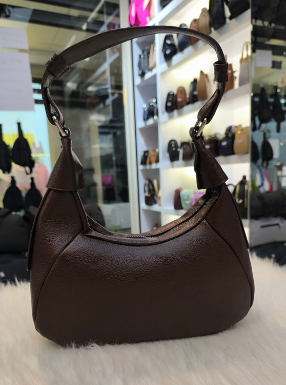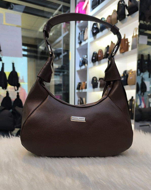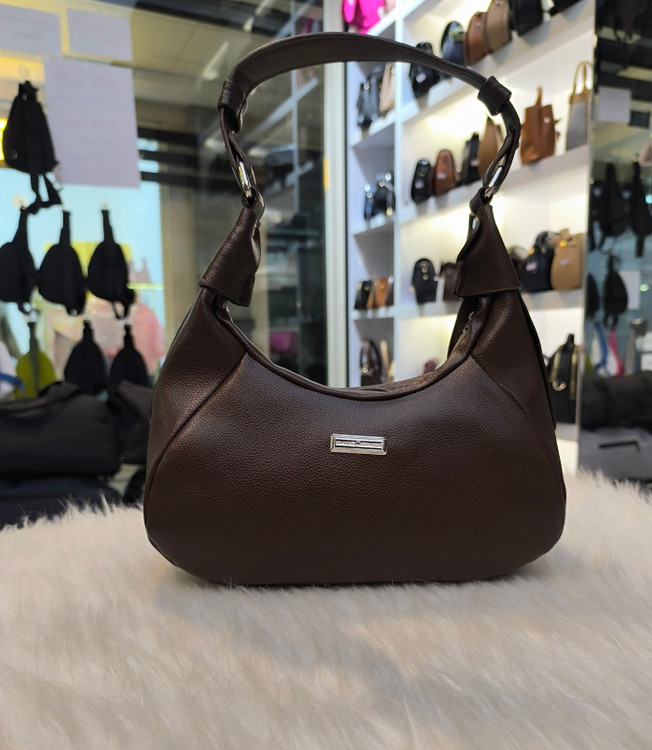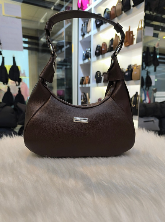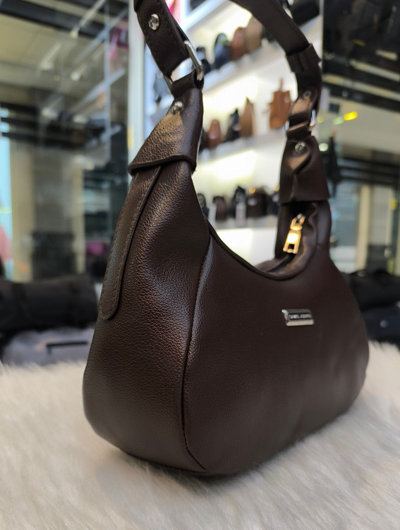 کیف دوشی جنس چرم خارجی رنگ قهوه ای با کیفیت وشیک مدل هلالی