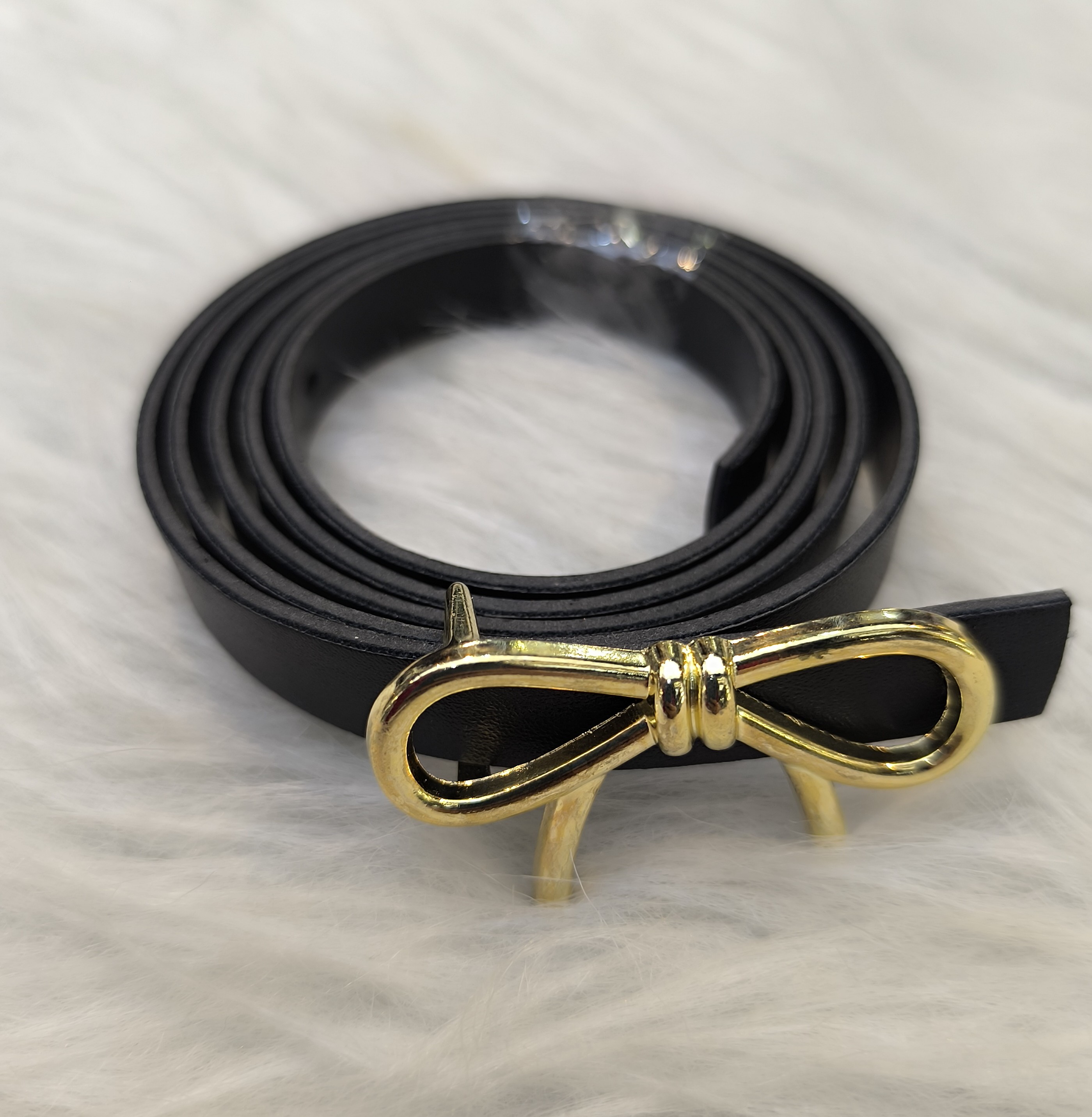 کمربند زنانه جنس چرم صنعتی مدل سگگ پاپیونی رنگ مشکی