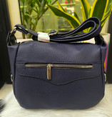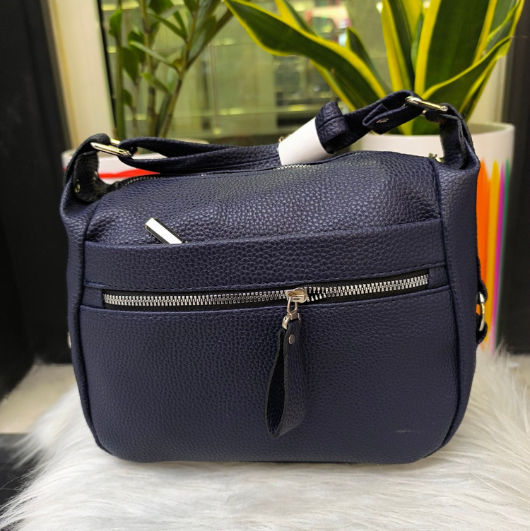 کیف /کیف دوشی/کیف اسپرت /کیف چرم/کیف زنانه سرمه ای چند زیپ جنس چرم شرانگ