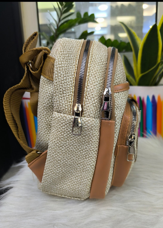 کوله پشتی مینی جنس چرم طرح کنف باکیفیت وجادار،شبک،کاربردی،اسپرت
