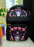 کوله پشتی دخترونه جنس برزنت خارجی با کیفیت طرح کرومی رنگ مشکی مناسب ابتدایی
