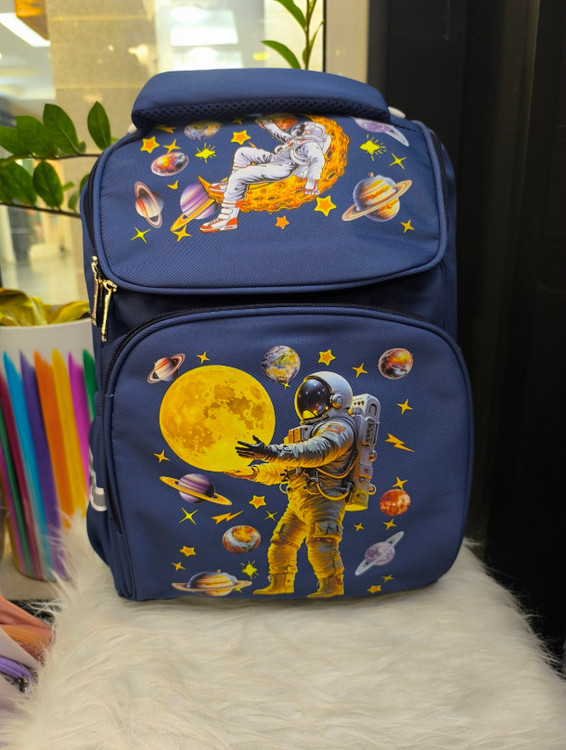 کوله پسرونه جنس برزنت خارجی با کیفیت طرح فضانورد مناسب پیش دبستان تا آخر ابتدایی ،ضد اب