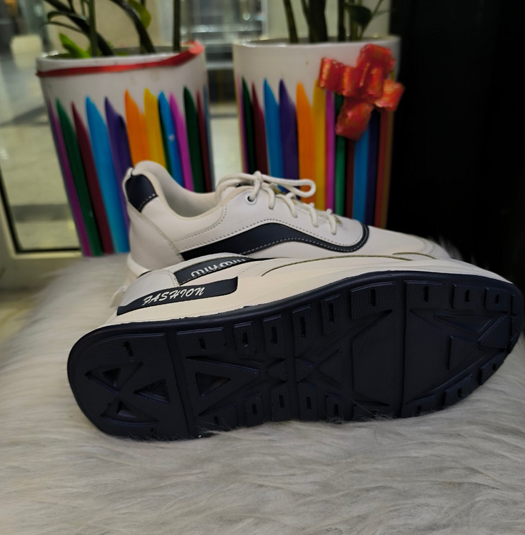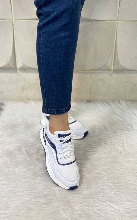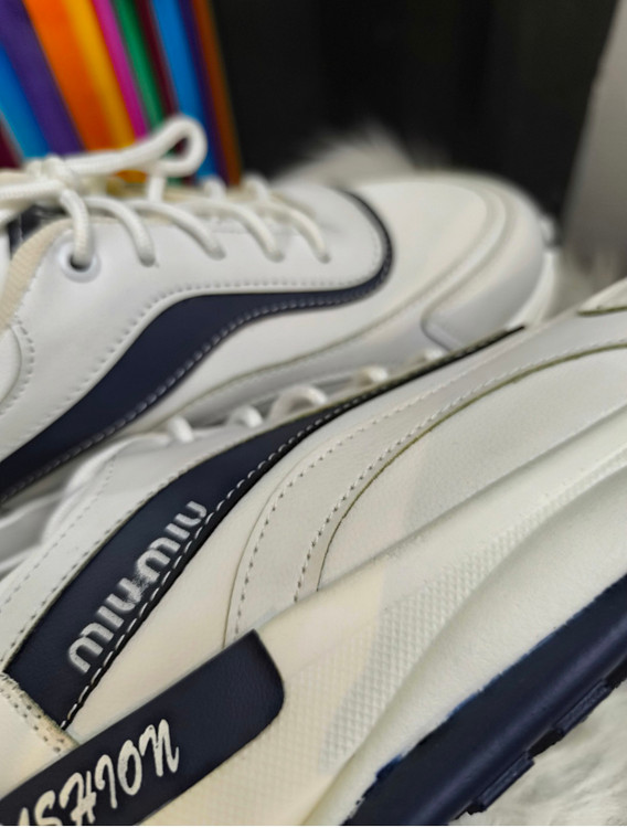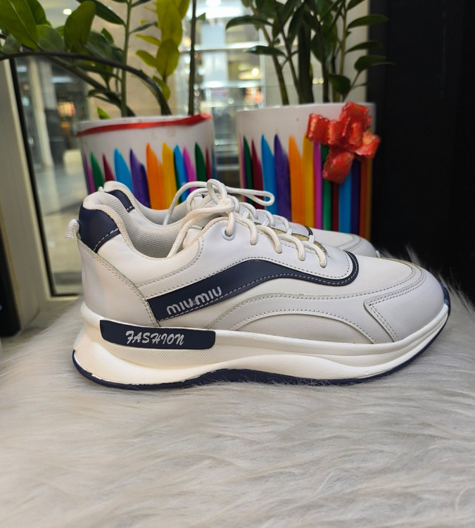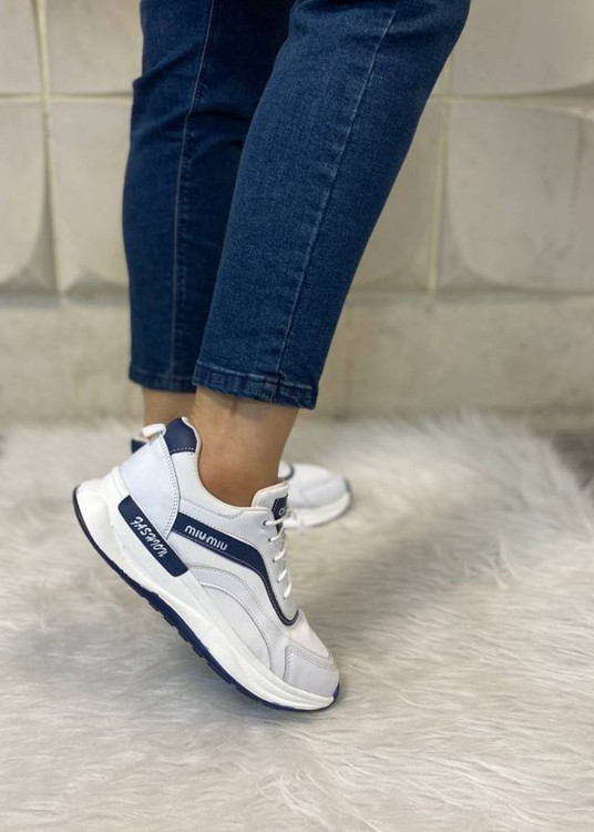 کفش کتونی زنانه طرح میومیو با کیفیت وشیک رنگ سفید سرمه ای سایز۷۳تا۴۰