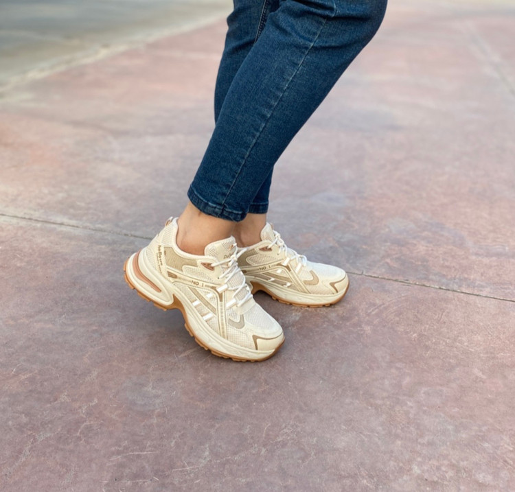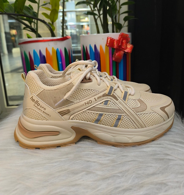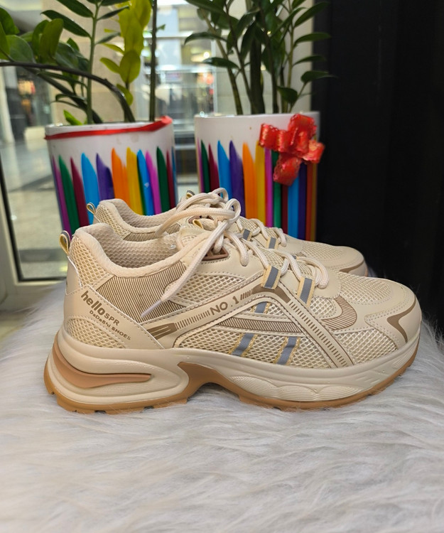 کتونی زنانه طرح مشابه خارجی بسیار باکیفیت وراحت سایز بندی ۳۸تا۴۰ رنگ کرم قهوه ای