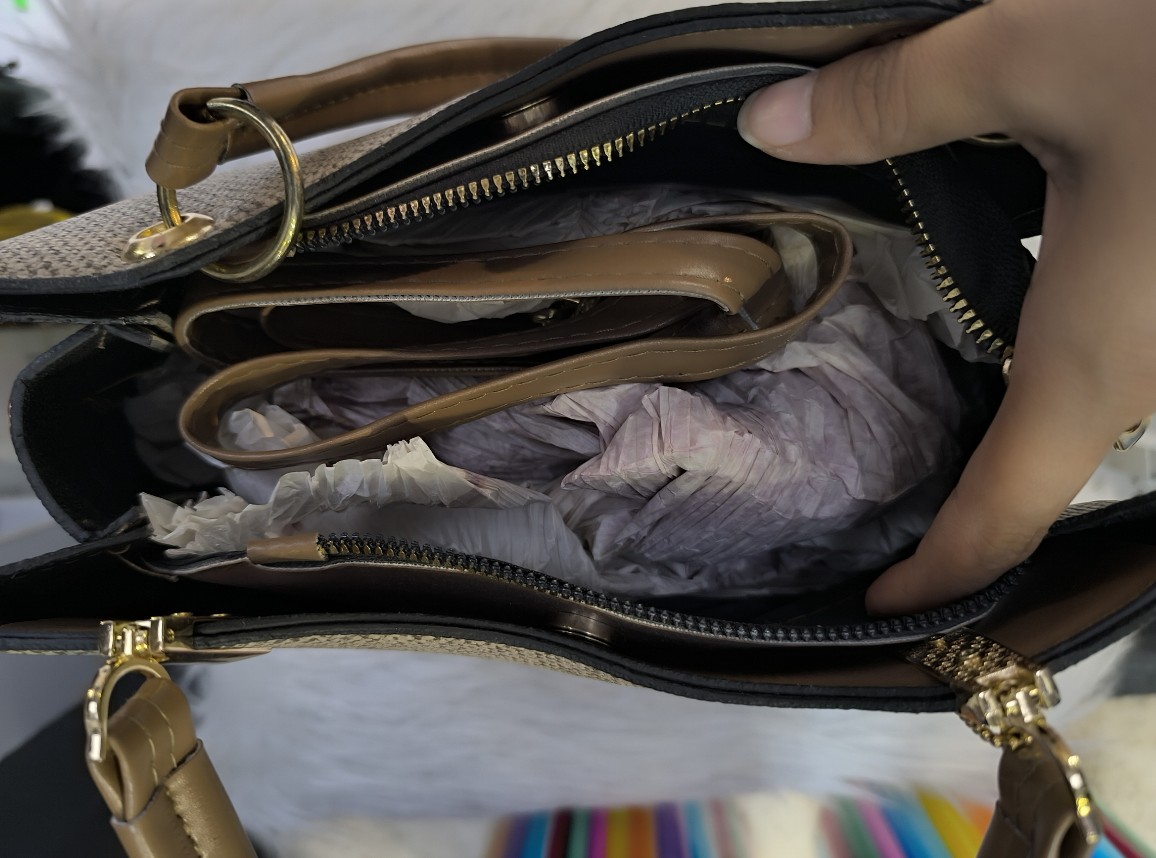 کیف زنانه جنس چرم طرح کنف کیفیت عالی وجادار
